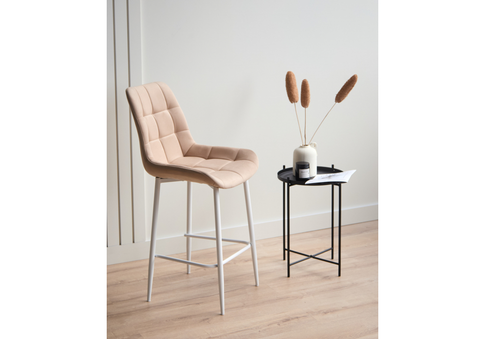 Материал каркаса - металл; Материал сиденья - велюр; Материал обивки - велюр; Цвет ножек - белый; Ширина - 50; Глубина - 58; Высота - 99; Ширина сиденья - 46; Глубина сиденья - 41; Высота сиденья - 63;