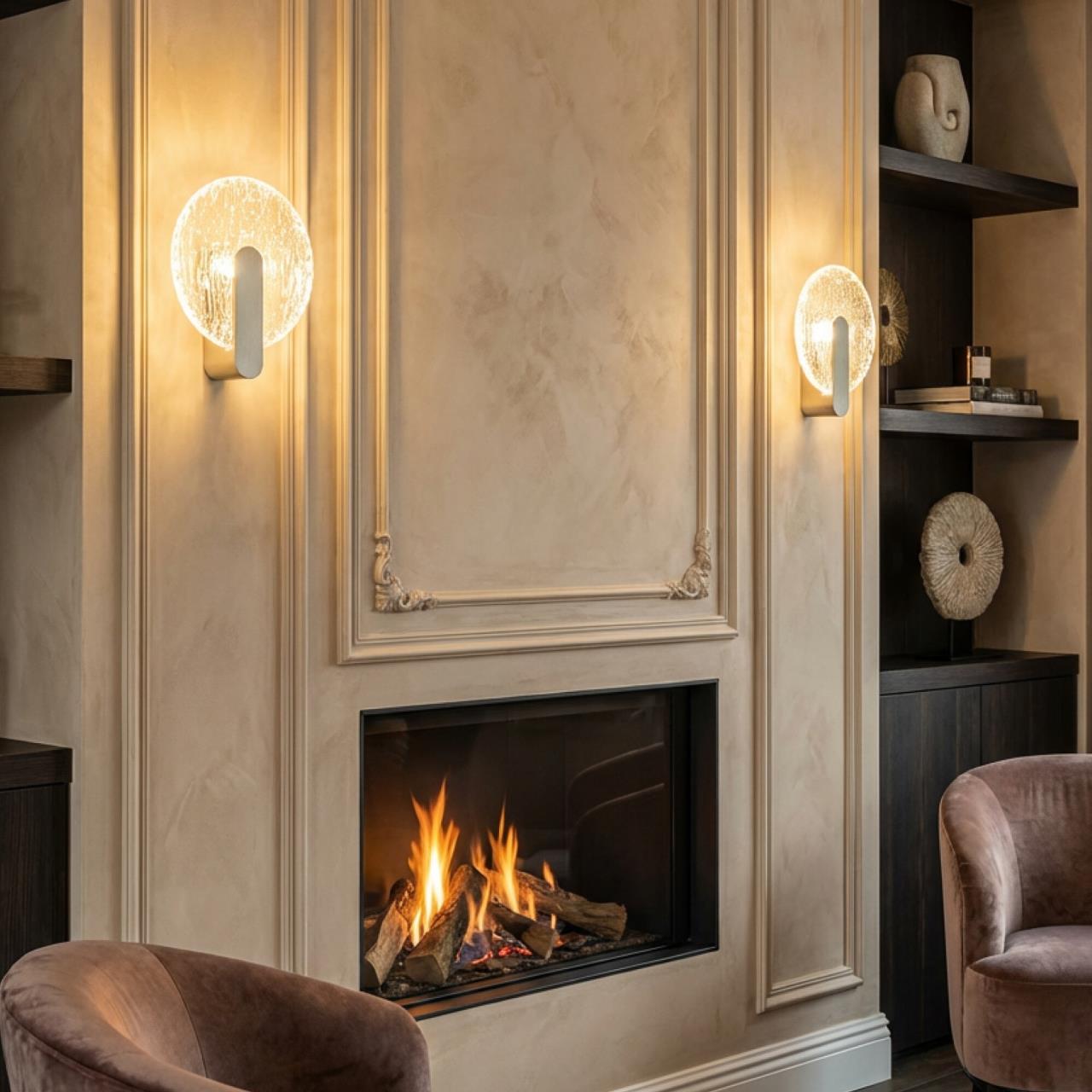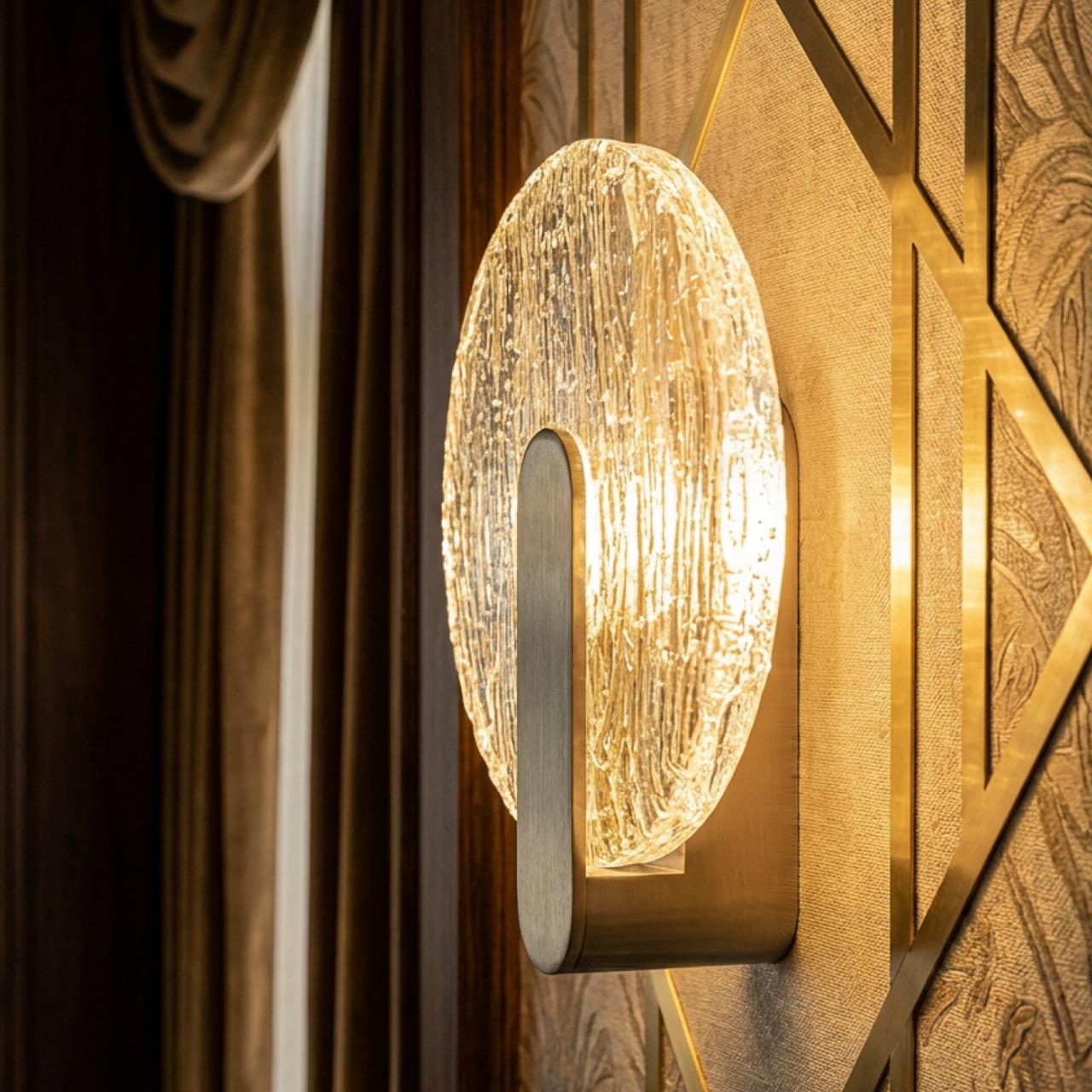Благодаря элегантному металлическому корпусу оттенка матовый хром светильник выглядит практически незаметным в интерьере. Плафон круглой формы, из стекла с причудливой текстурой, будто «вязаной». Встроенные светодиоды обеспечивают равномерное распределение света, без мерцания и пульсаций. Мощность бра составляет 5Вт, цветовая температура — 3000К, что соответствует теплому освещению.