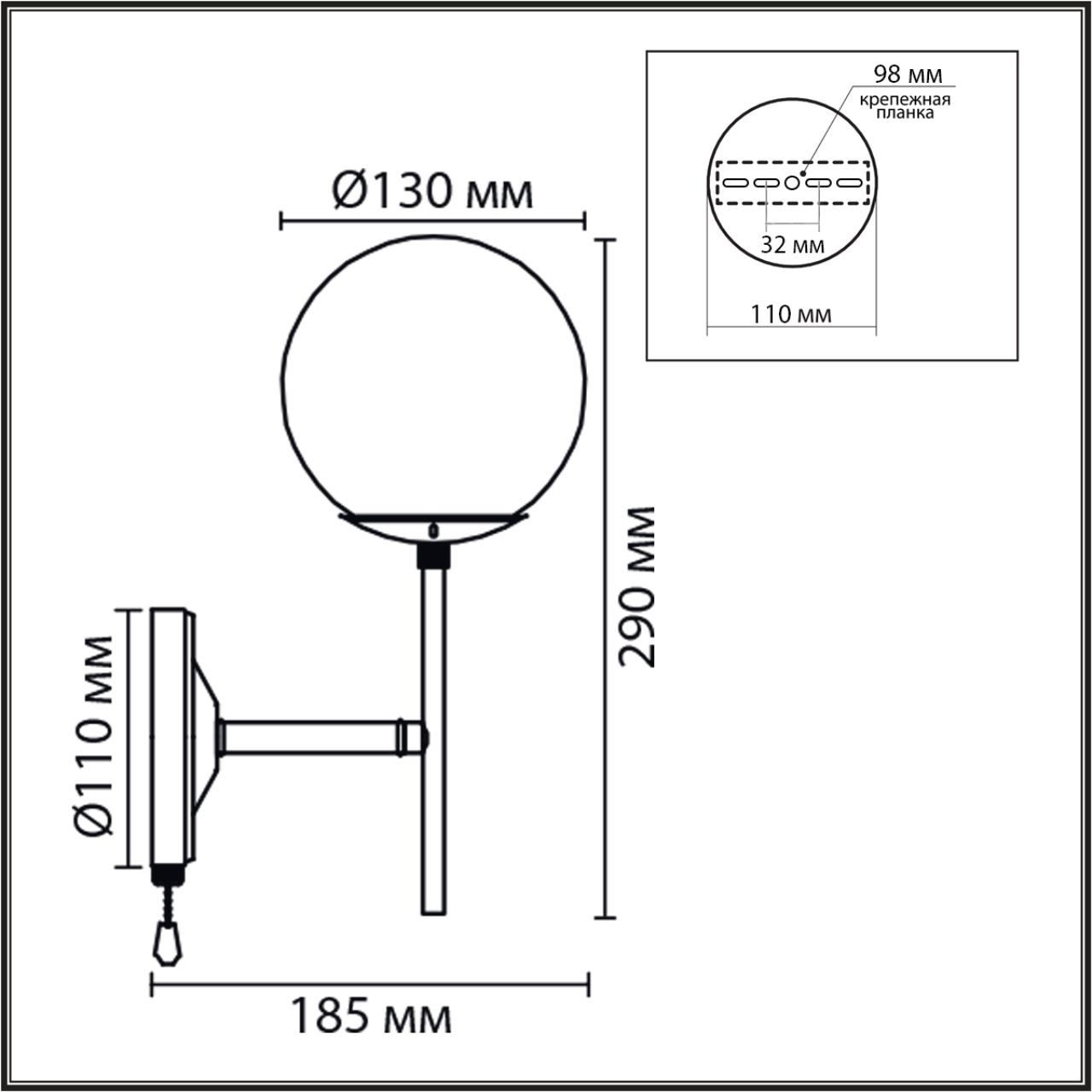 - Форма плафона: Шар