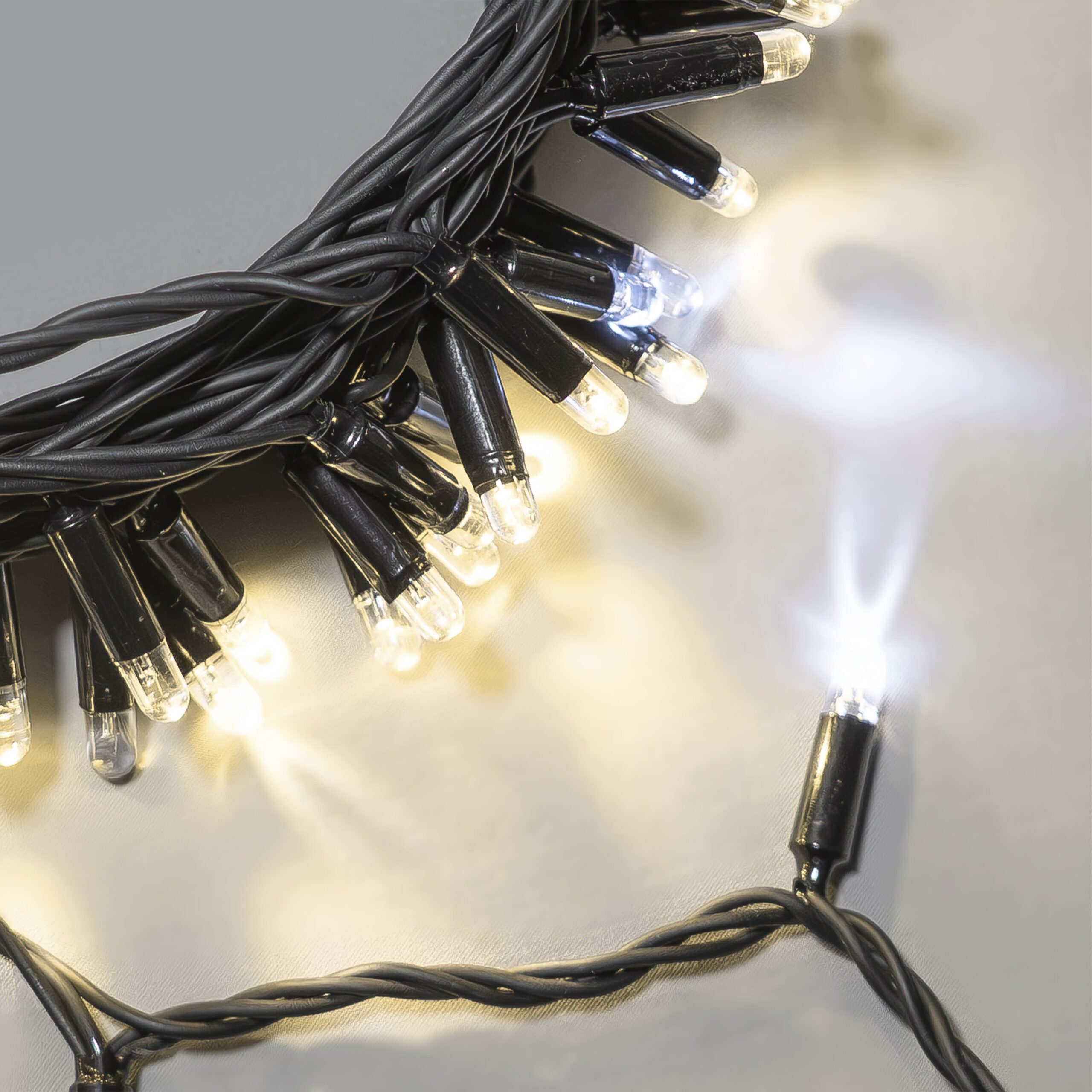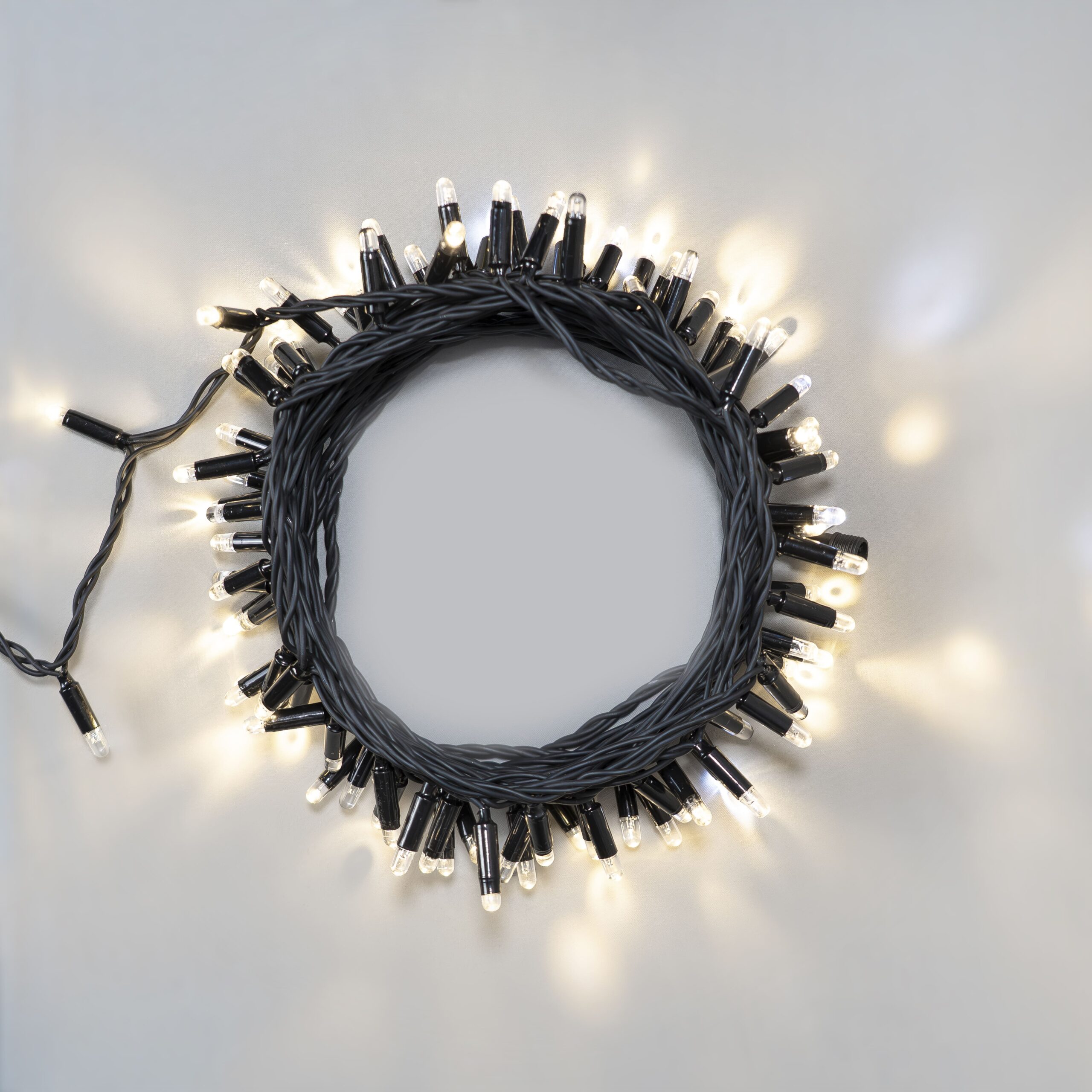 Гирлянда Нить 10м Тепло-Белая с Мерцанием Белого Диода 220В, 100 LED, Провод Черный Каучук 2, 3мм, IP65 LTC ECO100BLW-1-2WW в Екатеринбурге