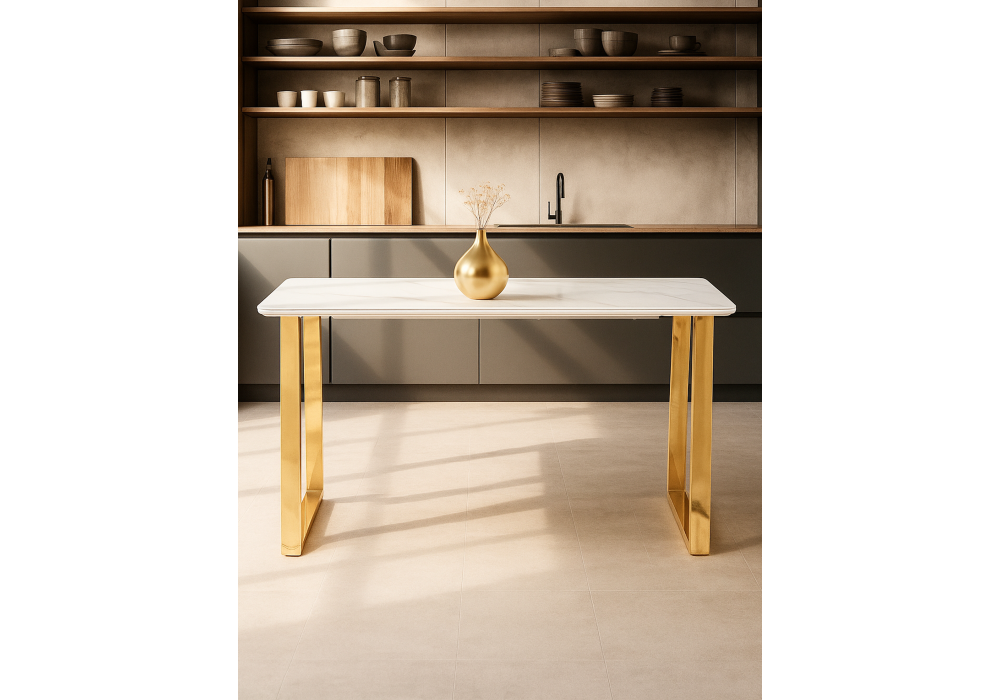 Керамический стол Woodville Селена 2 140х80х77 белый мрамор / золото 571412 в Екатеринбурге