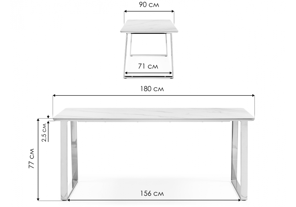 Материал каркаса - металл; Материал столешницы - Керамика; Ширина - 90; Высота - 77; Длина - 180;