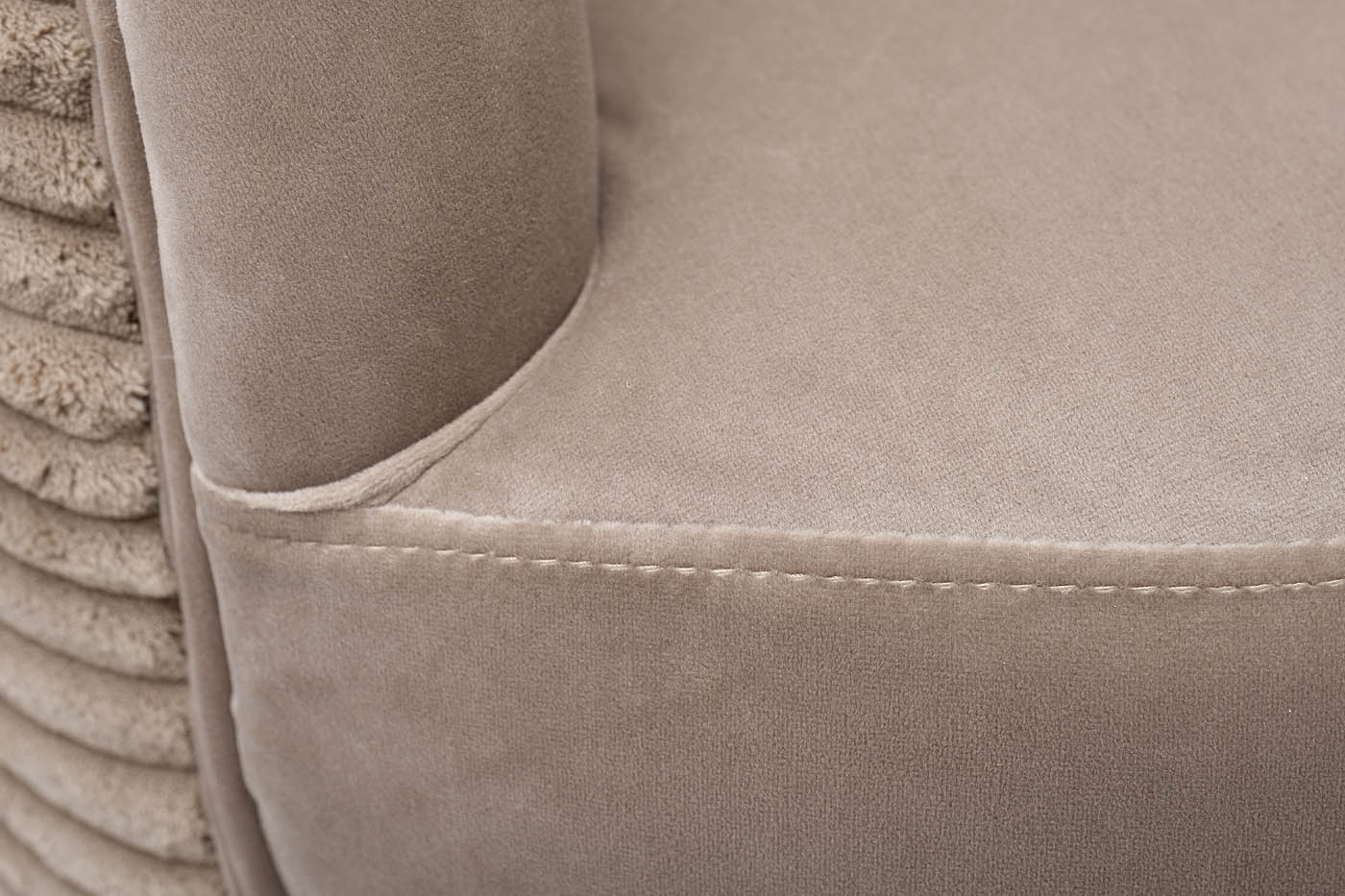 Комфортное велюровое кресло эффектно смотрится в современном интерьере ар-деко и является идеальным для отдыха. Оно найдет себе место в гостиной, спальне, кабинете, лаунж-зоне – в любом стильном пространстве. За счет мягкой обтекаемой спинки, плавно переходящей в подлокотники, дутое кресло обеспечивает максимальный комфорт и эффект «утопания». Каркас из дерева обеспечивает модели надежность и устойчивость, а позолоченные ножки из металла в стиле 50-х добавляют изящности. Бежевое кресло с обивкой из мягкого дорогого велюра составит стильную компанию дивану в аналогичной стилистике.