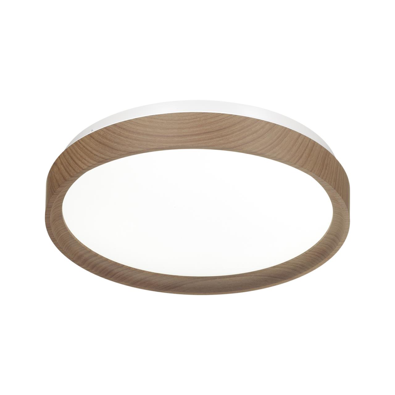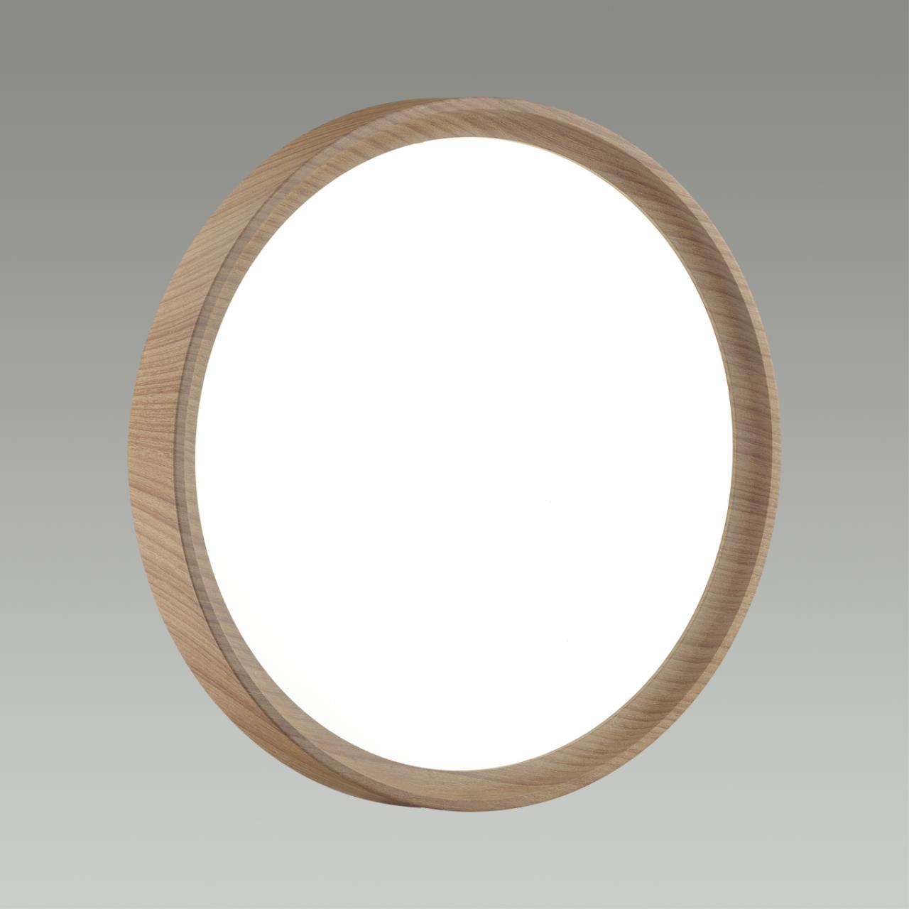 Светильник 7603/CLN линии WOODI состоит из металлического основания (базы) и пластикового рассеивателя. Материал рассеивателя - высококачественный пластик марки PMMA 2.0 белого цвета с матовой поверхностью, без текстуры. Пластик обеспечивает светильнику равномерное рассеивание и хорошее светопропускание. Форма плафона: круглая, декорирована ободом светло-коричневого цвета "под дерево". Степень защиты IP43 позволяет использовать светильник в определенных зонах влажных помещений. В комплект входит LED модуль с линзами, мощностью 36Вт, которая соответствует лампе накаливания 315Вт. Источник света имеет комфортную цветовую температуру 4000К (белый свет).