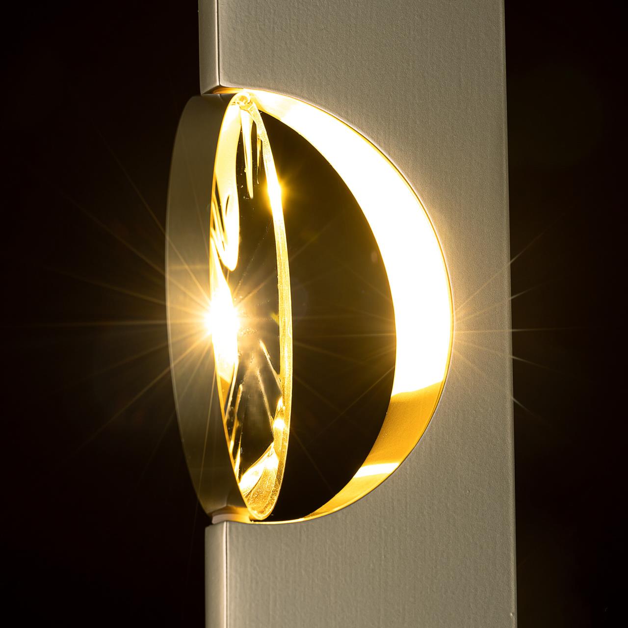 Тонкий металлический корпус матового золотого цвета имеет форму трапеции, благодаря чему светильники выглядят невесомыми и практически незаметными в интерьере. Встроенный светодиод мощностью 3Вт обеспечивает равномерное распределение света, без мерцания и пульсаций.