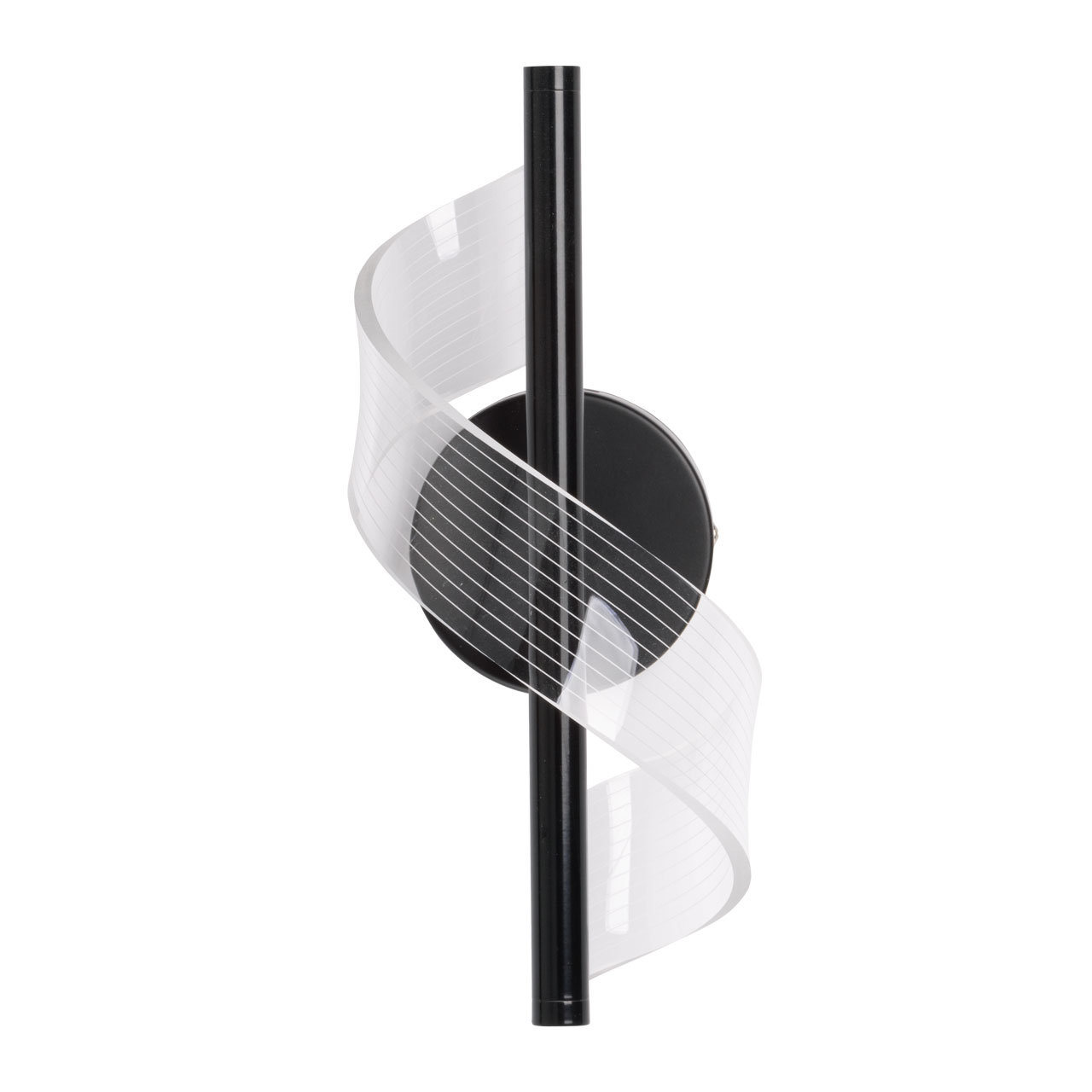 Черный цвет основания настенного бра привлекает к себе внимание и эффектно выделяет вертикальное бра на стене. Оригинальный плафон из прозрачного акрила в виде закрученной ленты делает настенное бра арт объектом. Многорежимность с изменением цветовой температуры от 3000К до 6500К является элементом светодизайна и позволяет подобрать комфортную температуру света. Качественные светодиоды и корпус из сплава алюминия обеспечивают яркое освещение и долгий срок службы. Светодиодные источники света экономичны и безопасны.