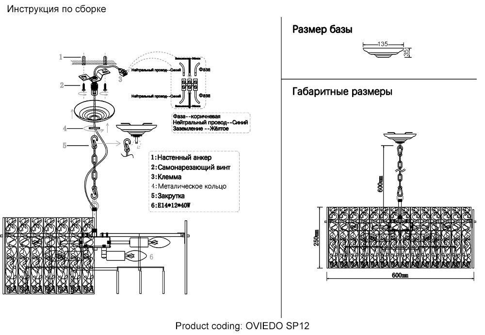 Подвесная люстра Crystal Lux Oviedo SP12 в Екатеринбурге