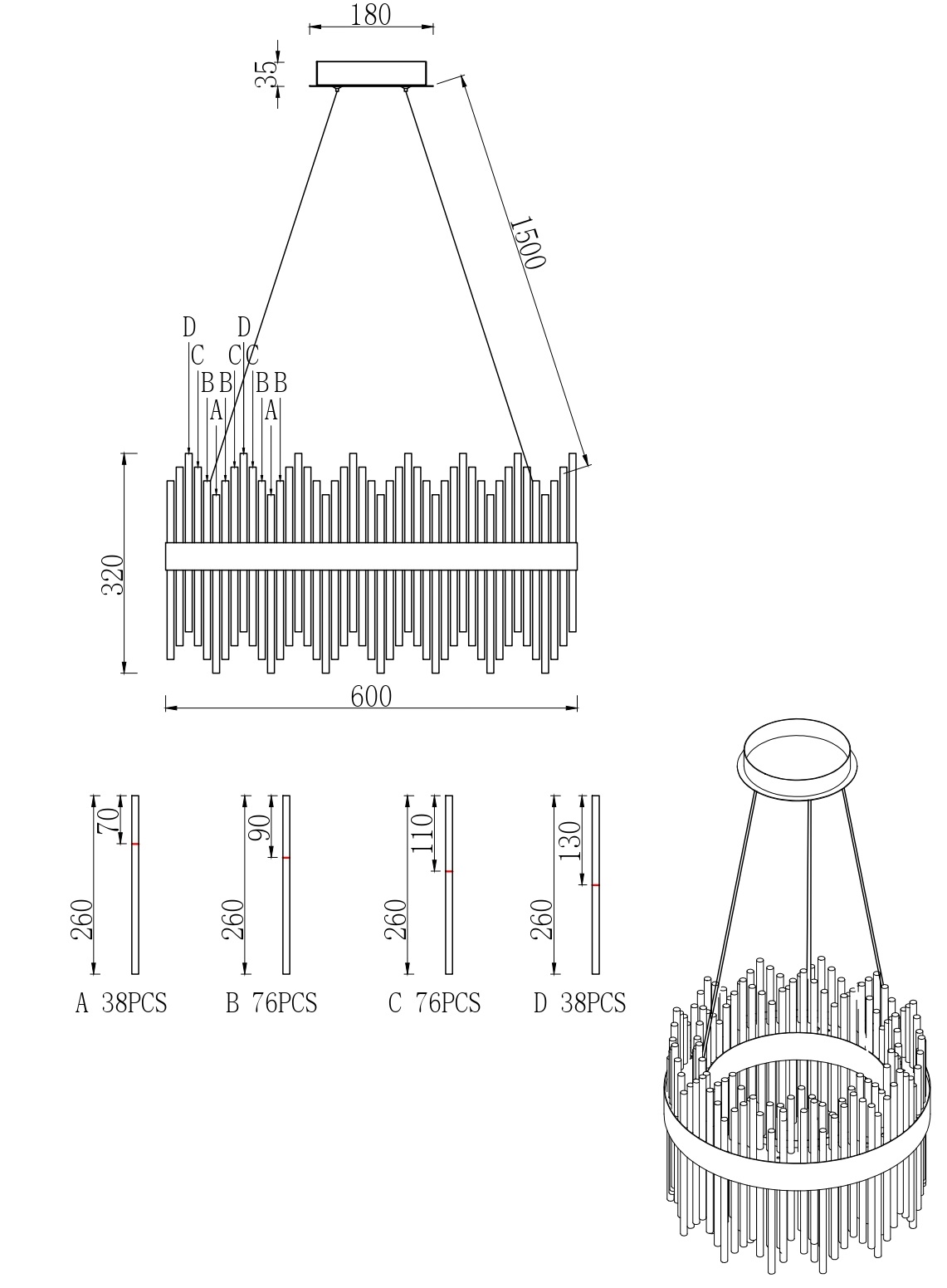 Подвесная люстра Garda Decor 62GDW-901-600 в Екатеринбурге