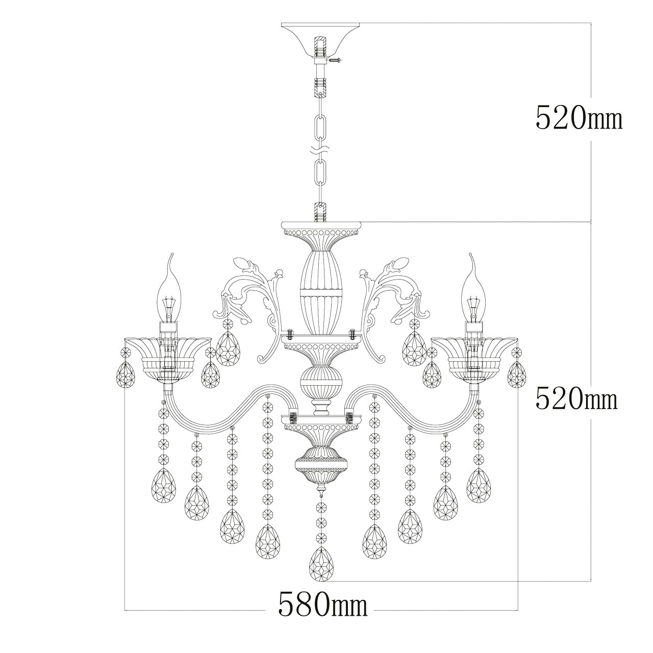 MW-Light Селена привлекает внимание пышным убранством. Основание ярко сияет благодаря фактуре и сложной форме, а флористические декоративные элементы в верхней части придают сходство с шикарным букетом. Переплетения хрустальных подвесов грушевидной огранки на тонких цепочках делают светильник воздушным и изящным и создают невероятную игру света на потолке и стенах.
