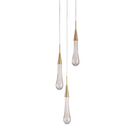 Подвесной светильник Delight Collection DZ1018P-3 brass с тремя подвесами в виде капли на круглом основании. "Капли" из прозрачного стекла, основание светильника из металла цвета латунь. Высота капли 31 см, диаметр 5 см