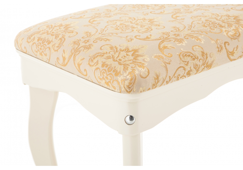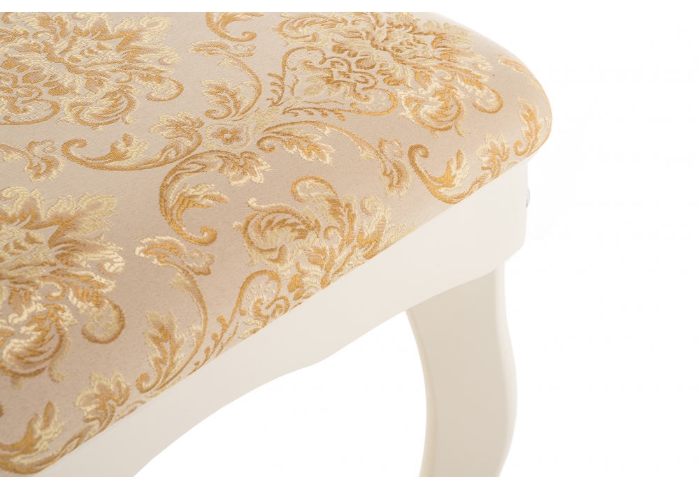 Материал каркаса - Массив березы; Материал сиденья - Ткань; Материал ножек - Массив березы; Материал обивки - Ткань; Цвет каркаса - Белый; Цвет сиденья - Бежевый; Цвет ножек - Белый; Цвет обивки - Бежевый; Ширина - 76; Глубина - 36; Высота - 47;