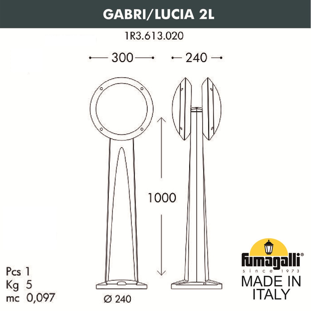 Купить "Садовый светильник-столбик Fumagalli Gabri/Lucia 2l 1R3.613.020.LYE27"