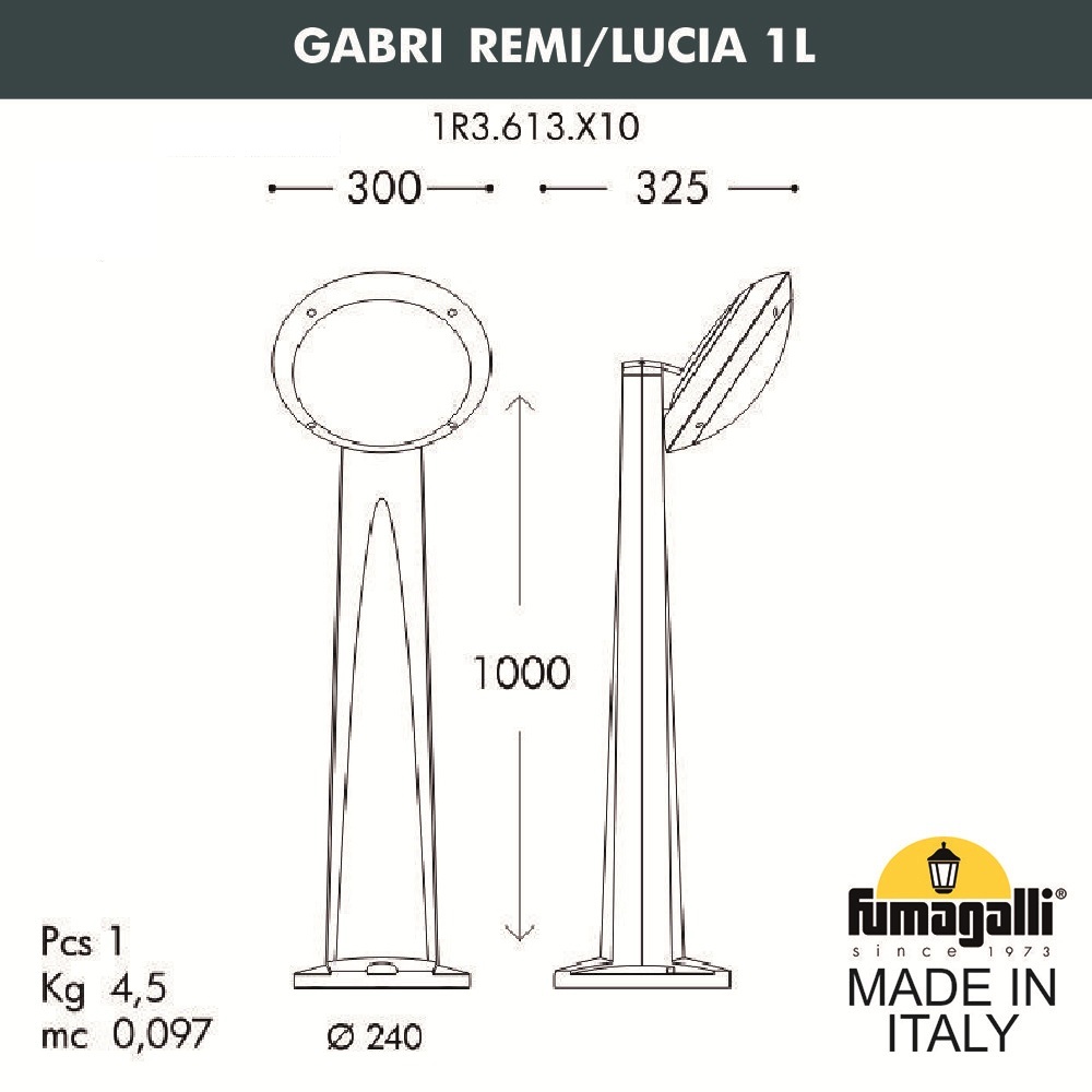Садовый светильник-столбик наклонный Fumagalli Gabri remi/Lucia 1l 1R3. 613. X10. LYE27 в Екатеринбурге