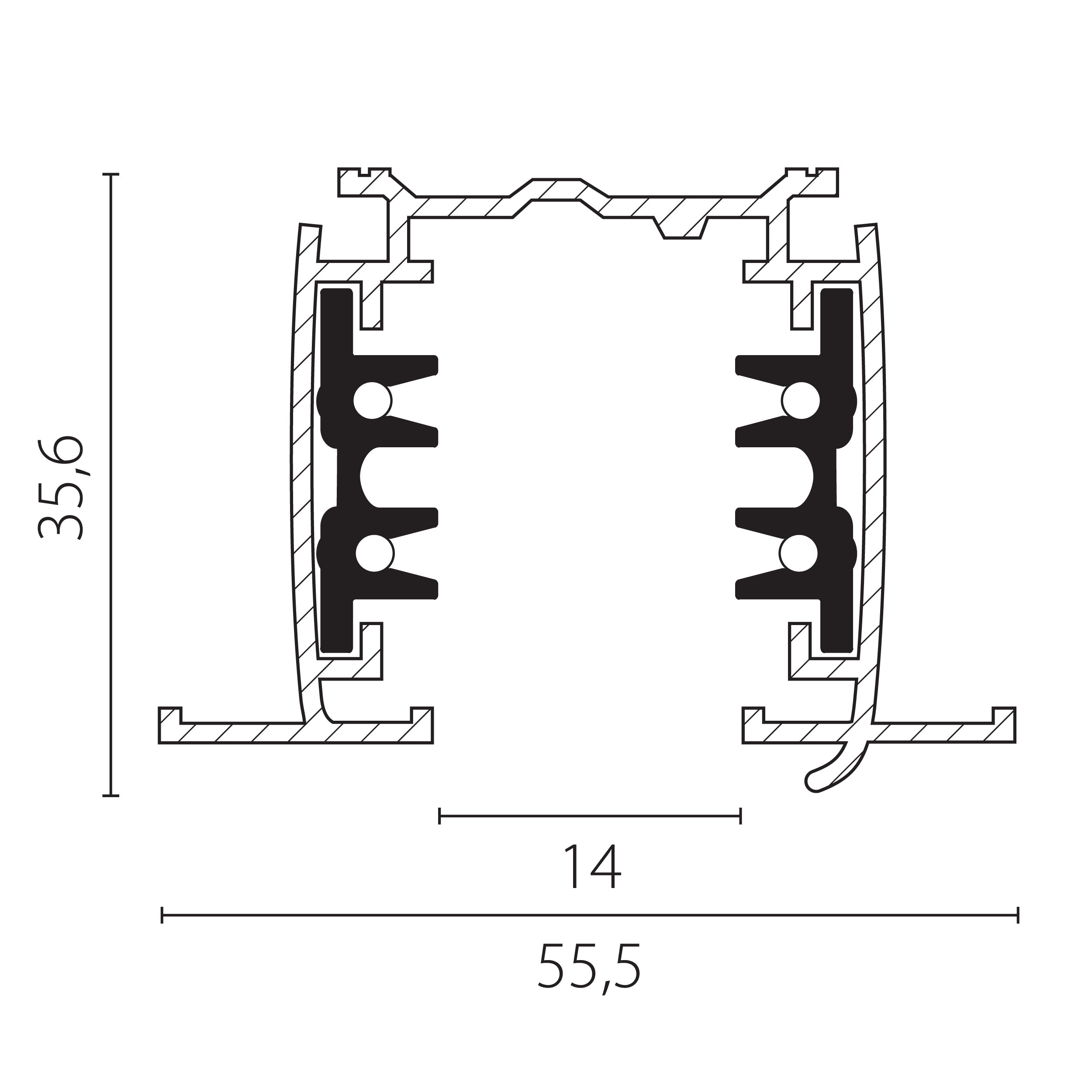 Шинопровод трехфазный четырехконтактный встраиваемый Lightstar Quattro 503028-R в Екатеринбурге
