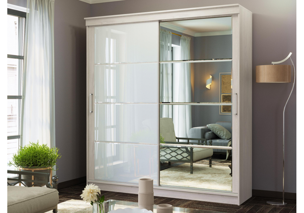 Шкаф-купе Woodville Москана-2 1, 5м анкор светлый / зеркало / лакобель белый 614766 в Екатеринбурге