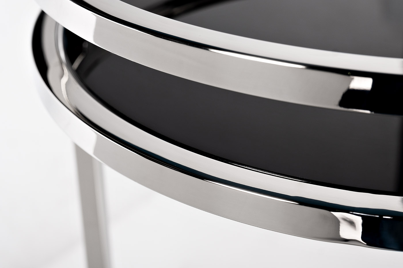 Дизайнерский журнальный столик из черного стекла несмотря на свои скромные габариты станет заметным украшением гостиной. Благодаря стильному блеску металла он привнесет в атмосферу нотку шика и элегантности. Журнальный столик цвета хром имеет одну особенность –металлическое основание оригинальной круглой формы. За счет этого модель выглядит легкой, но при этом прочно стоит на любой поверхности. Декоративный стол будет уместно смотреться не только в интерьере современной гостиной, но и в спальне, прихожей, кабинете