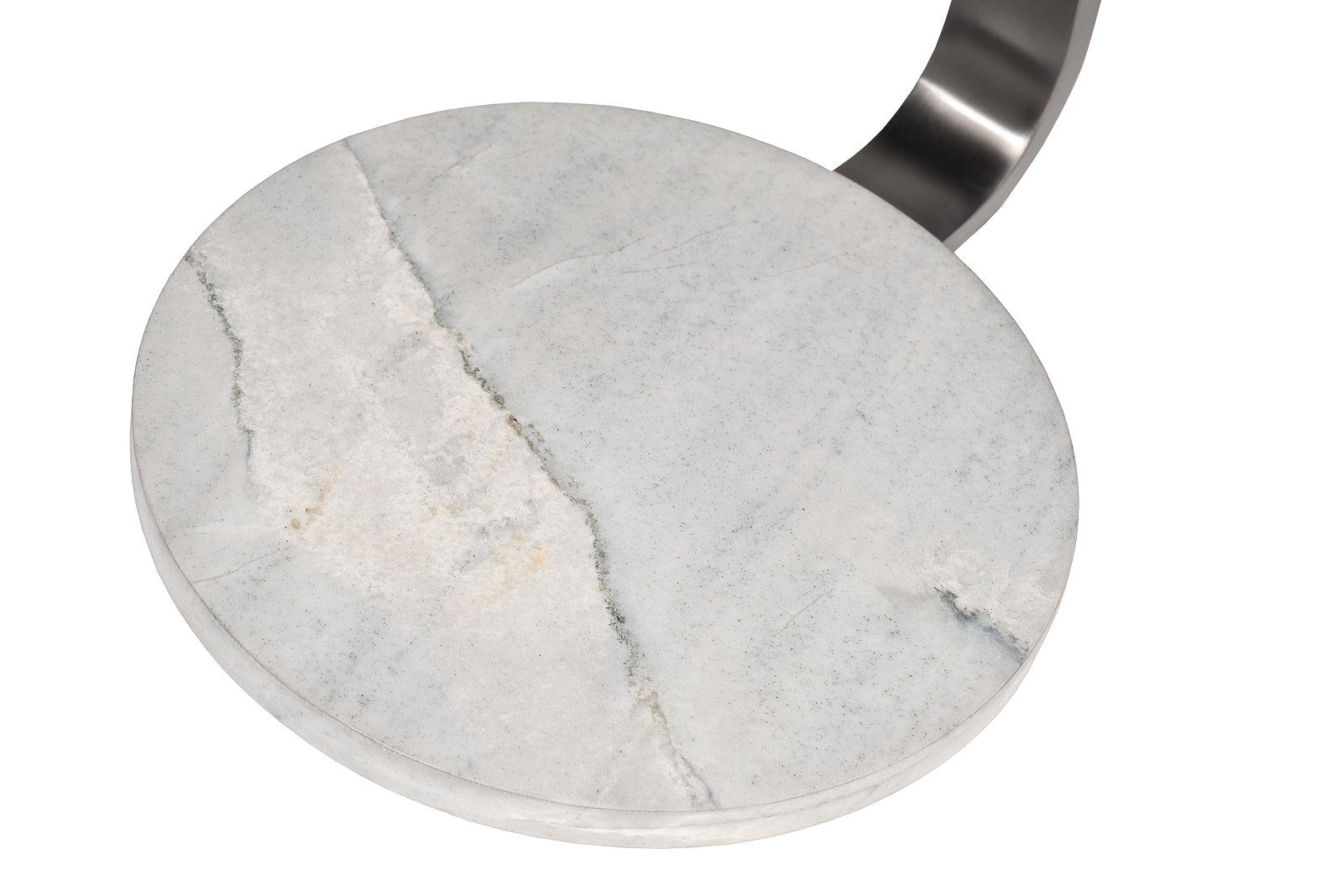 Лаконичный приставной журнальный столик – стильный и функциональный элемент современного интерьера. Его сбалансированный дизайн сочетает в себе натуральные материалы и смелые линии: массивная база из природного светлого мрамора обеспечивает устойчивость, а легкая изогнутая металлическая опора с покрытием серого цвета придает конструкции динамику. Столешница из МДФ со шпоном цвета венге подчеркивает природную эстетику модели. Компактный журнальный столик легко перемещается и гармонично вписывается в пространство, будь то уютная гостиная или стильный рабочий уголок. Толщина столешницы: 25мм