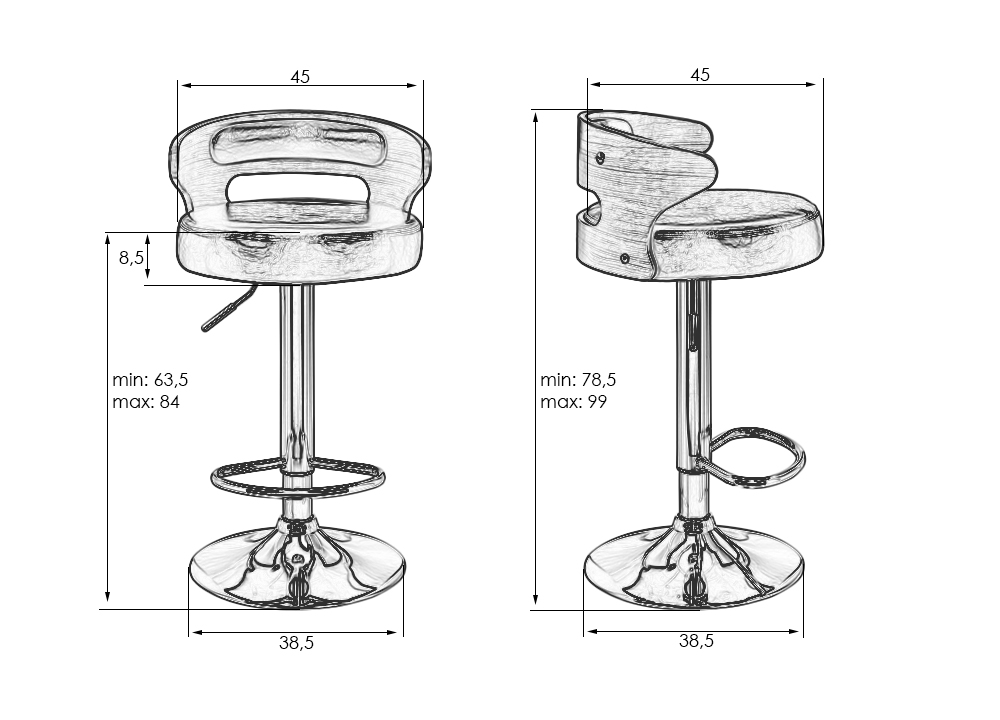 - Высота сиденья: 63.5 мм