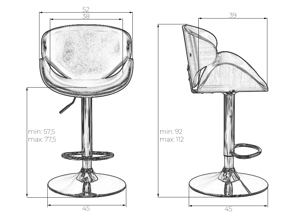 - Высота сиденья max: 775