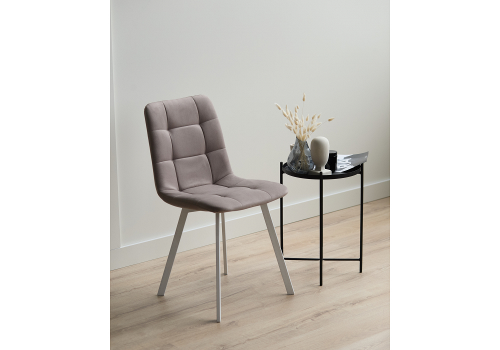 Материал каркаса - металл; Материал сиденья - велюр; Материал обивки - велюр; Цвет ножек - белый; Ширина - 43,5; Глубина - 50; Высота - 87,5; Ширина сиденья - 40; Глубина сиденья - 37,5; Высота сиденья - 49;