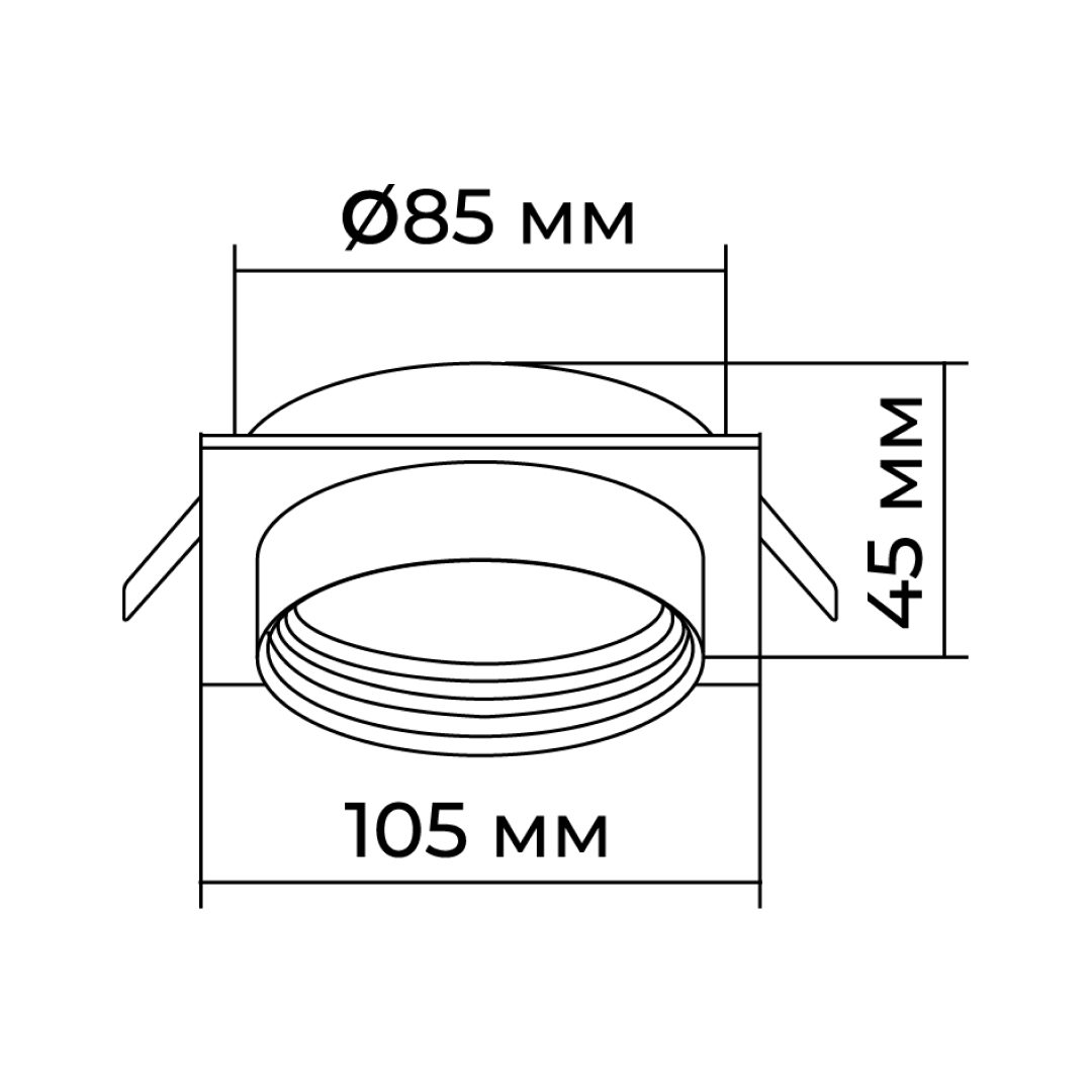 - Диаметр врезного отверстия: 85 мм (8.5 см)