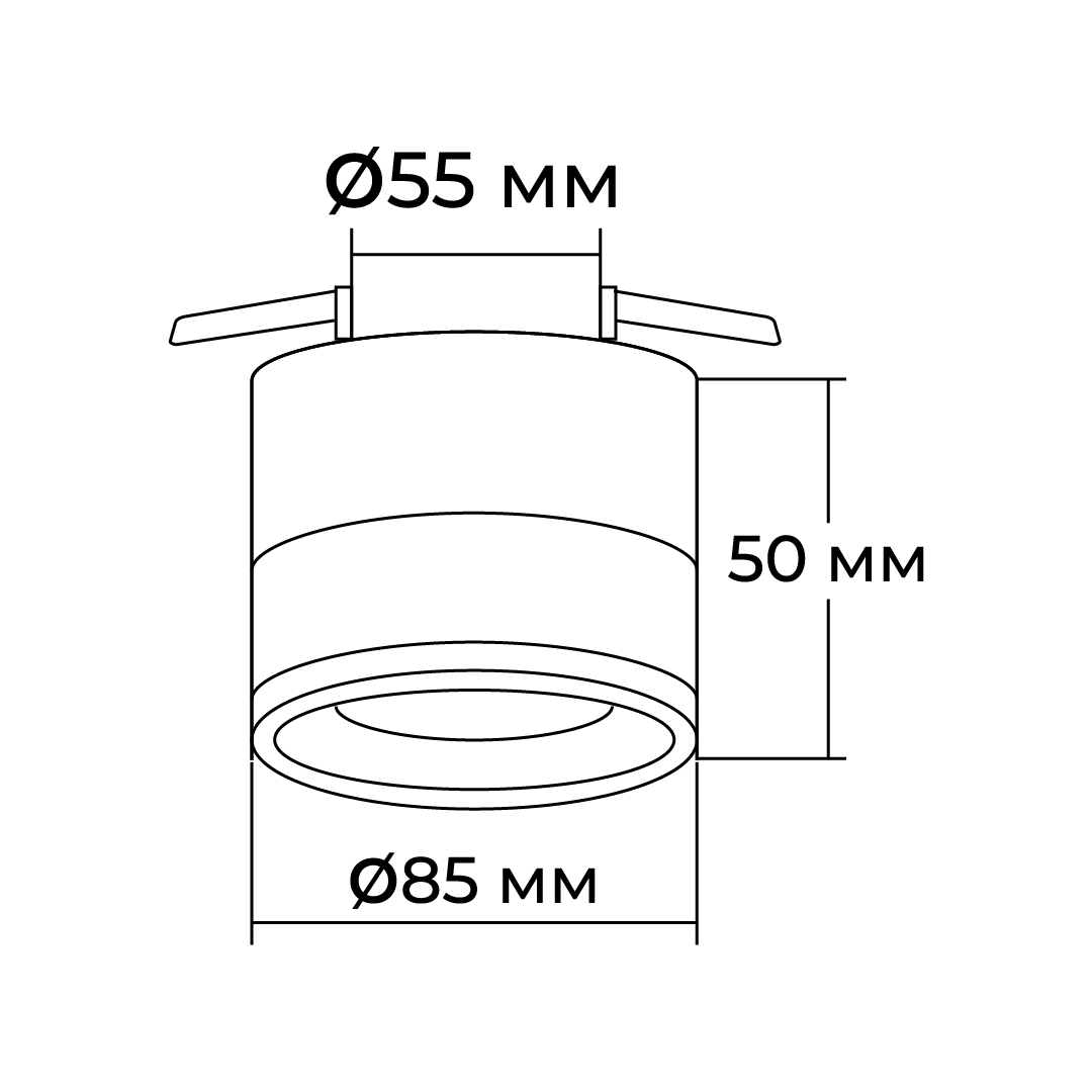 - Диаметр врезного отверстия: 55 мм (5.5 см)