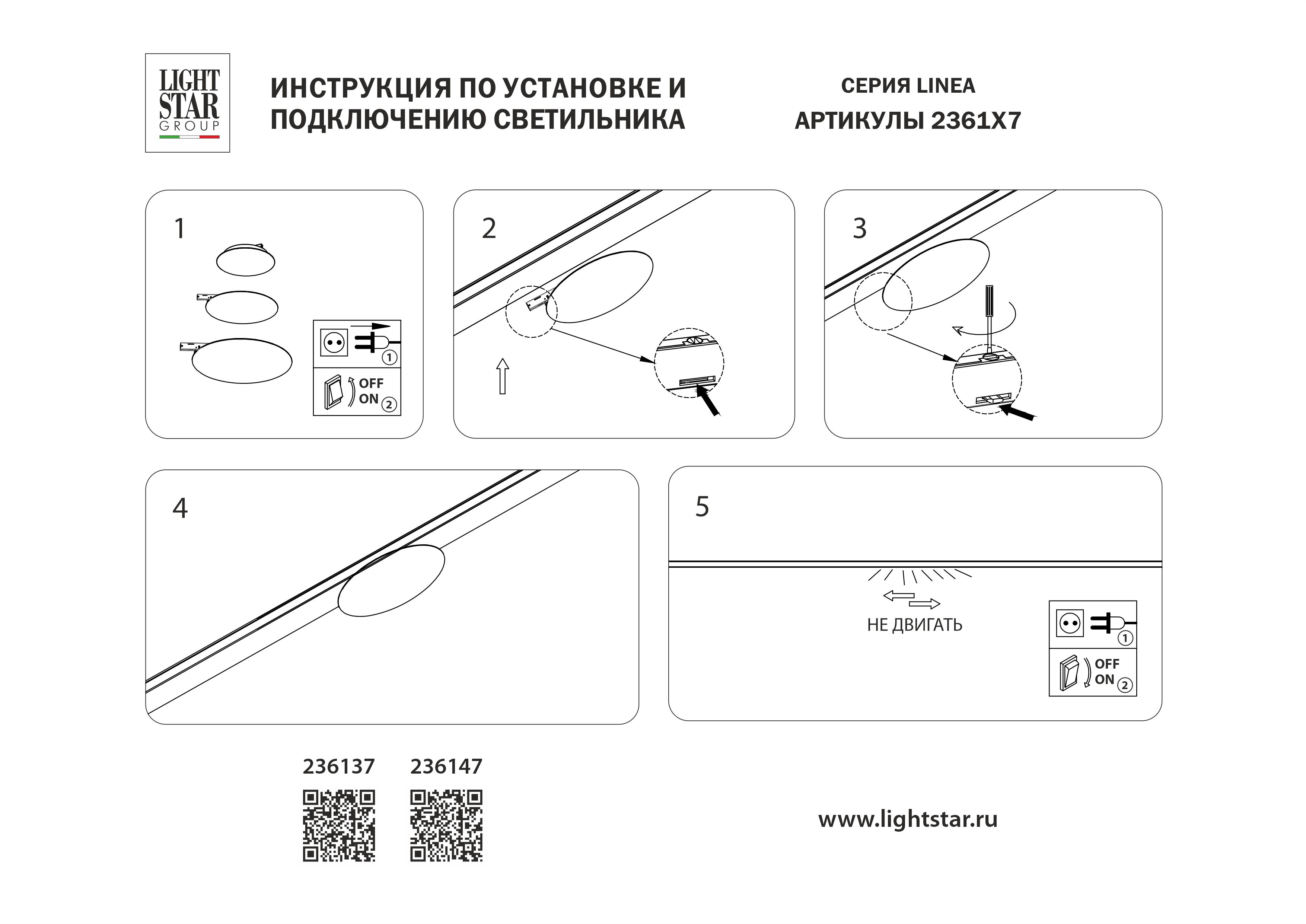 Трековый однофазный светильник 24V 5W 200° 4000K Lightstar Linea 236147 в Екатеринбурге