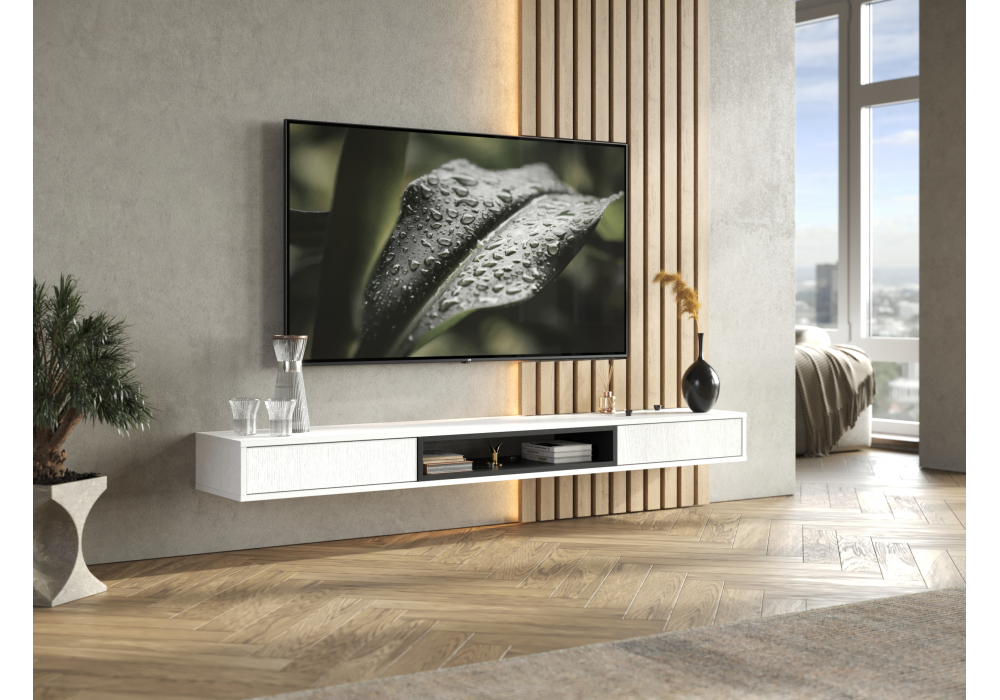 Купить "ТВ-тумба Woodville Делора 1,8м белый / черный 674720"