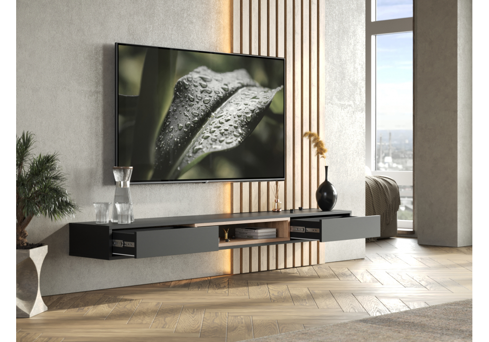 Купить "ТВ-тумба Woodville Делора 1,8м черный / дуб вотан 674722"