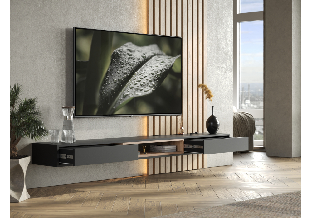 Купить "ТВ-тумба Woodville Делора 2,0 м черный / дуб вотан 674728"