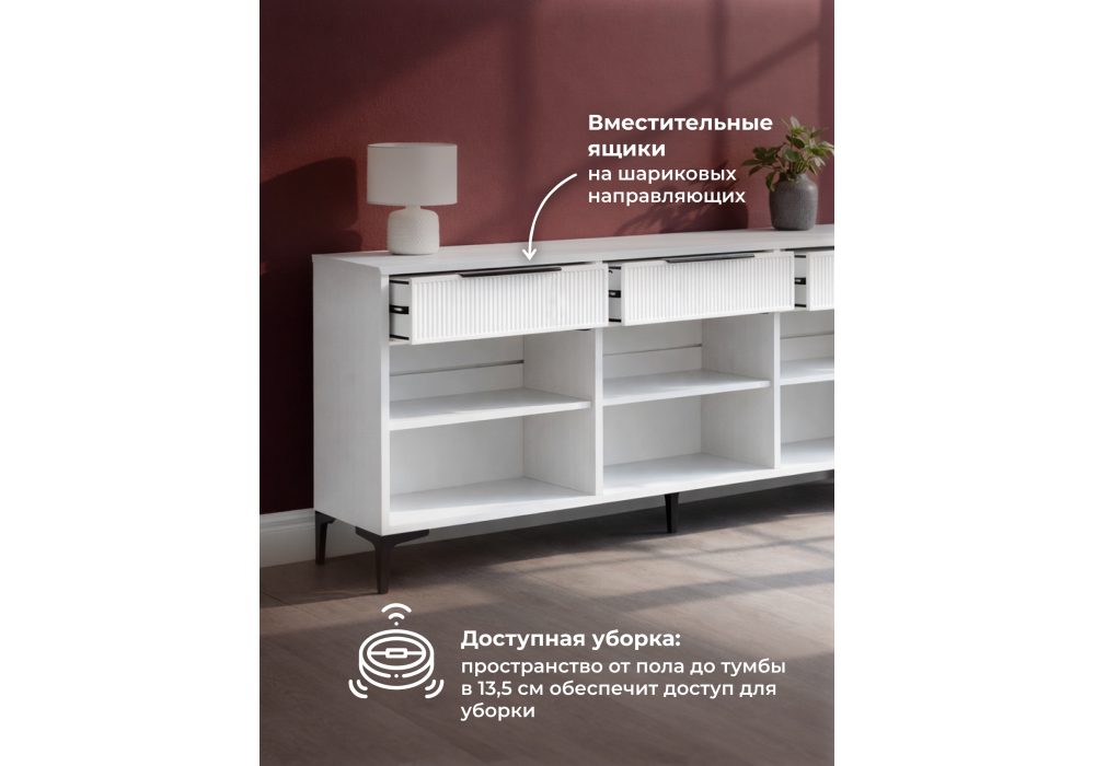 Купить "ТВ-тумба Woodville Иадама 3-ств. белый / белый софт 674702"