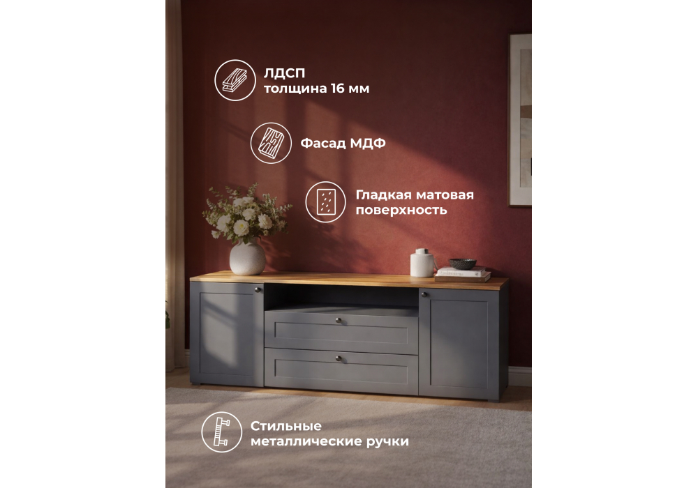 Купить "ТВ-тумба Woodville Опра серый графит / дуб золотой craft 676803"