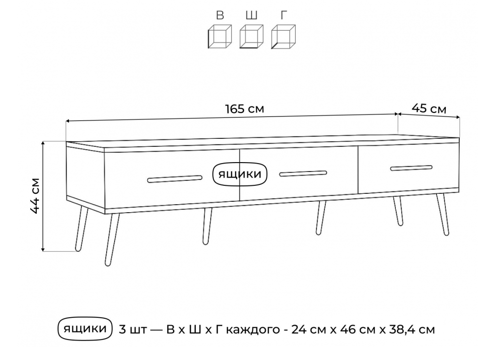 Материал каркаса - ЛДСП; Ширина - 165,2; Глубина - 45; Высота - 44;