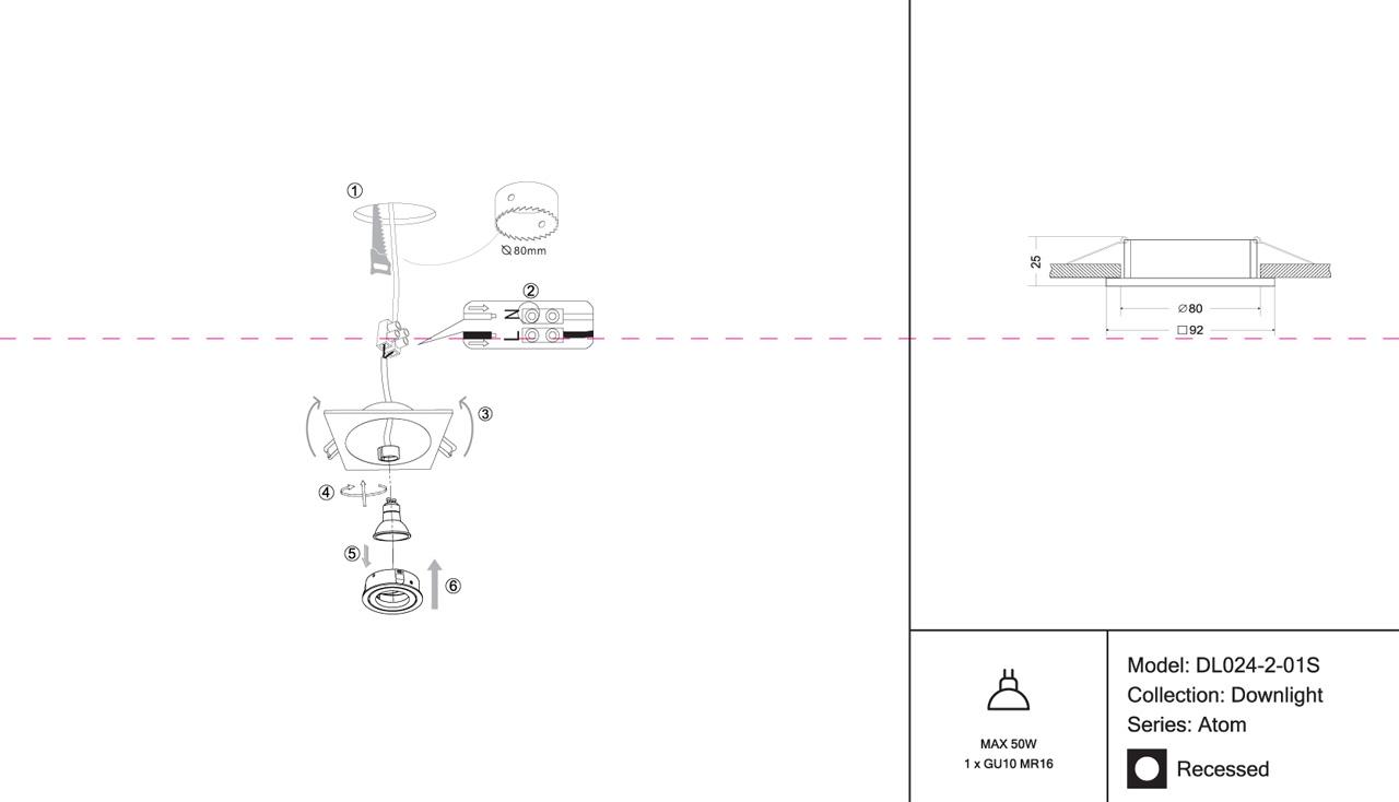 - Диаметр врезного отверстия: 80 мм (8 см)