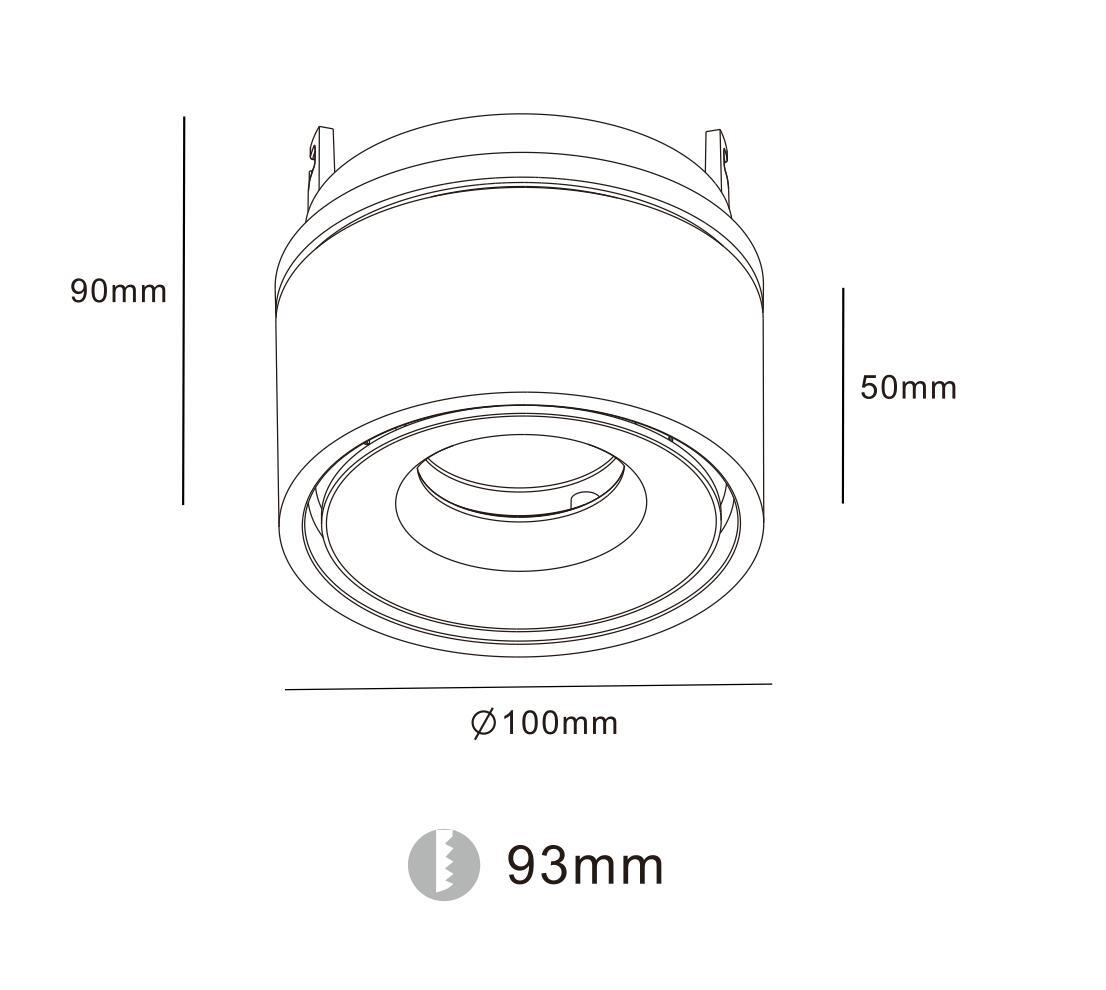 - Диаметр врезного отверстия: 93 мм (9.3 см)