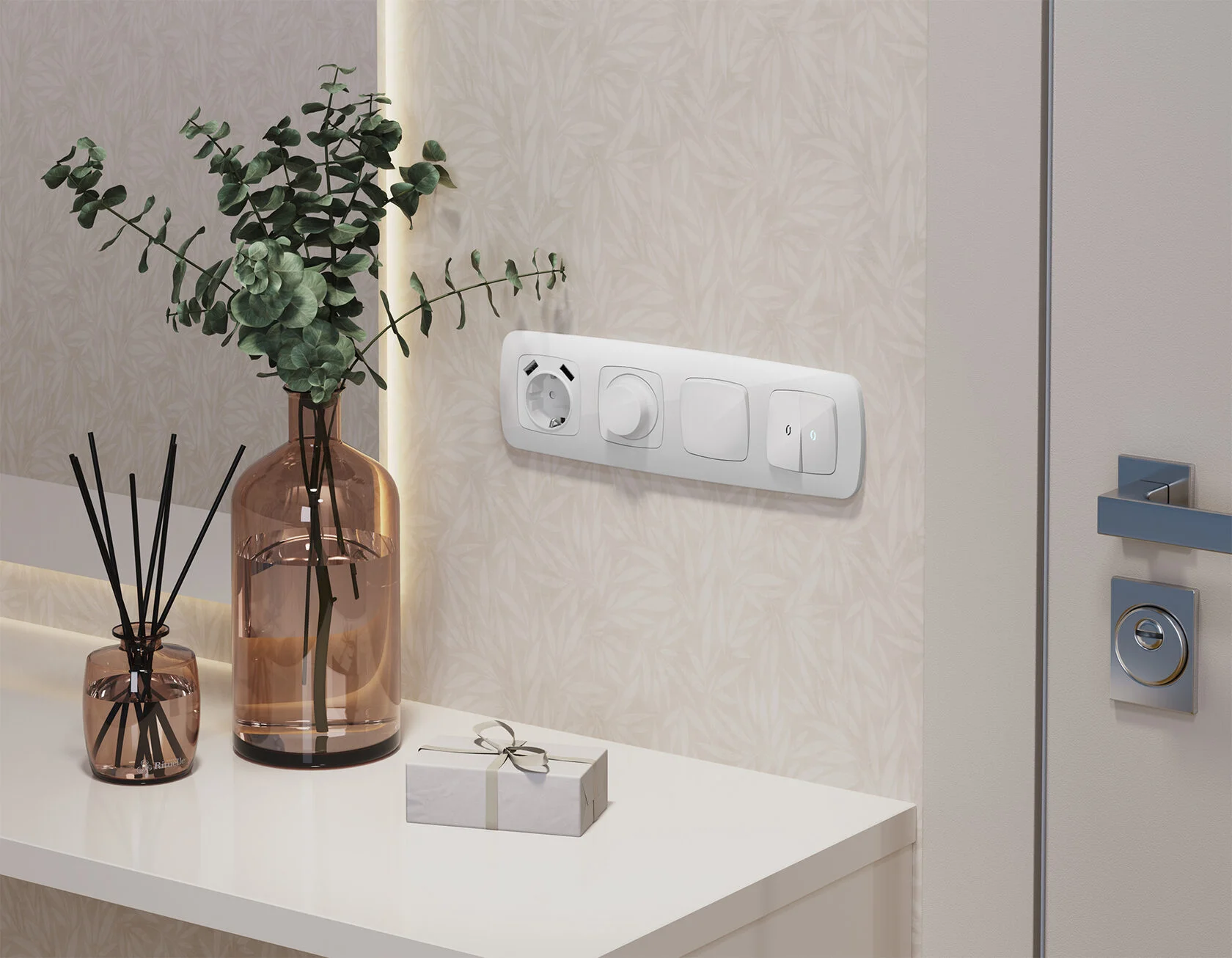 Многогранный ассортимент Ambrella Volt включает в себя механизмы, лицевые панели и рамки, а также комплекты, доступные в различных цветовых решениях. Продукция представлена в модульном исполнении, что позволяет гибко настраивать внешний вид и функциональность. Вам будет легко заменить лицевую панель, рамку или механизм, найдя идеальное сочетание цветов.