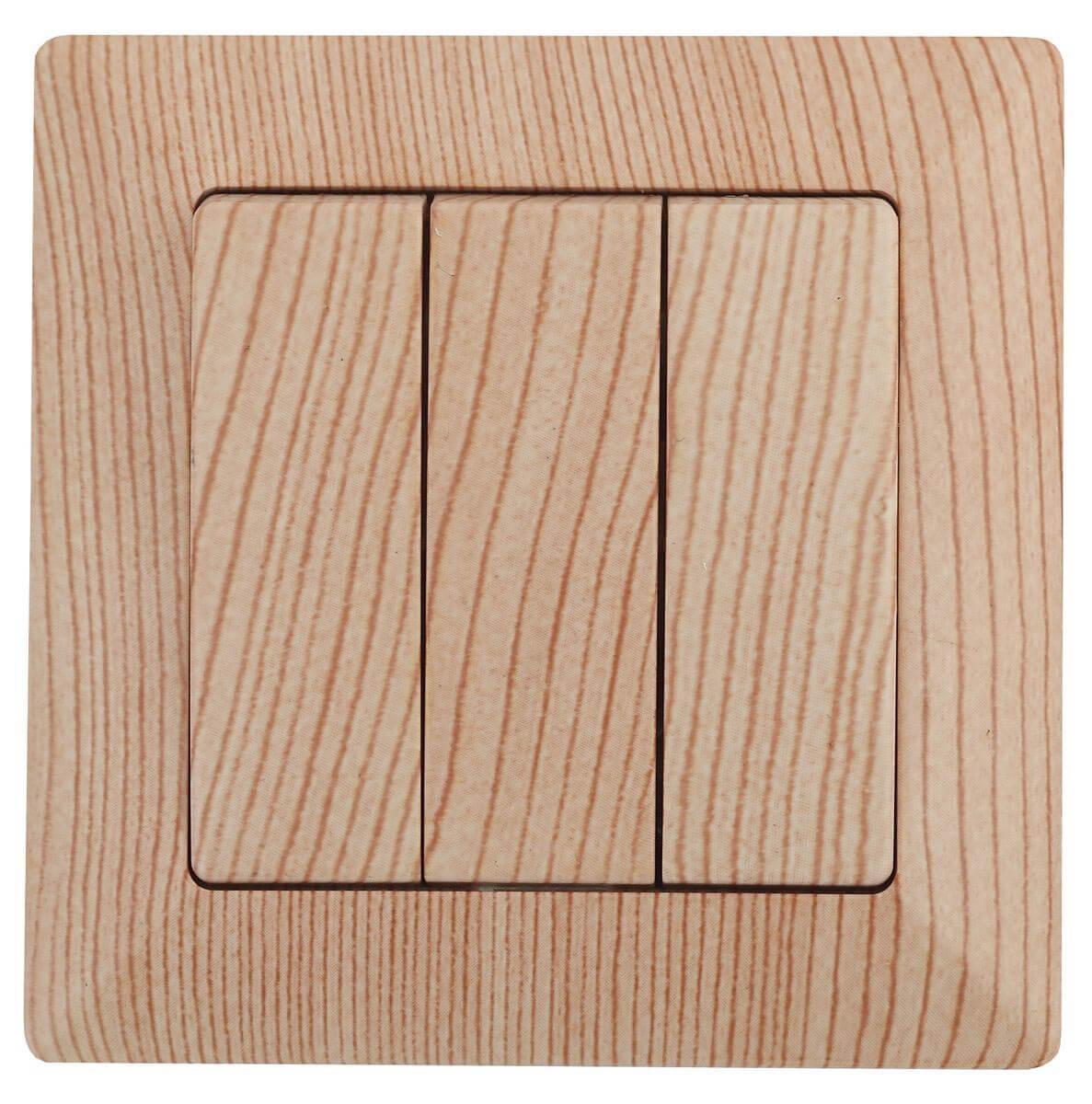 Купить "Выключатель трехклавишный ЭРА Intro Solo 10A 250V дерево 4-106-11 Б0043304"