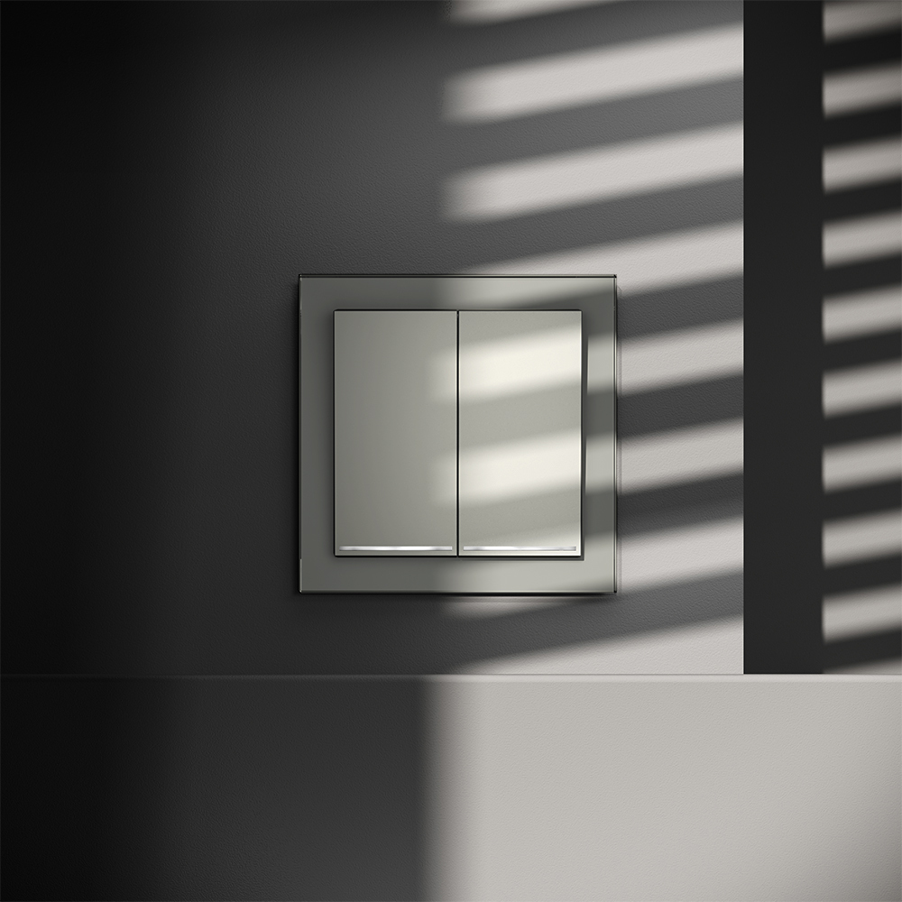 Купить "Выключатель встраиваемый двухклавишный с подсветкой 10А Voltum S70 VLS020205 (сталь)"