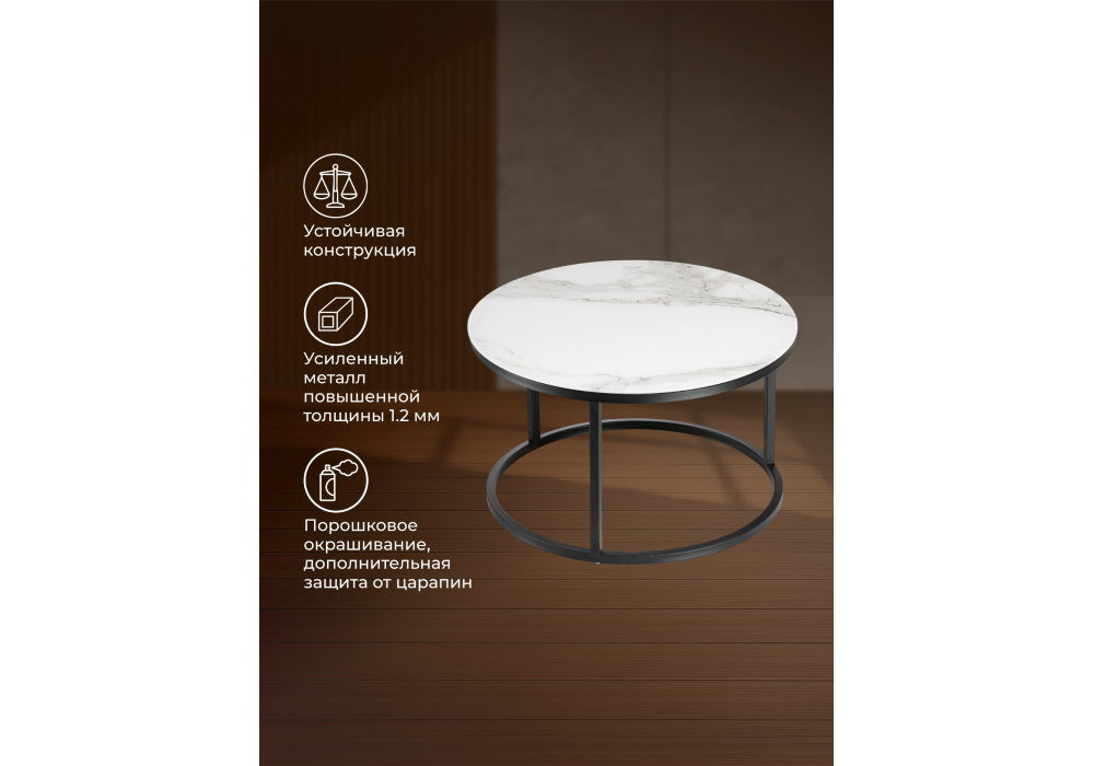 Купить "Журнальный стол Woodville Плумерия белый мрамор / черный 500007"