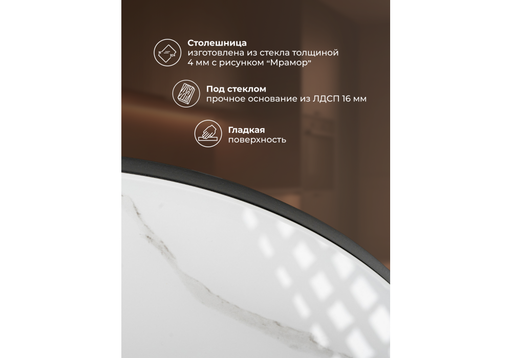 - Материал столешницы: стекло